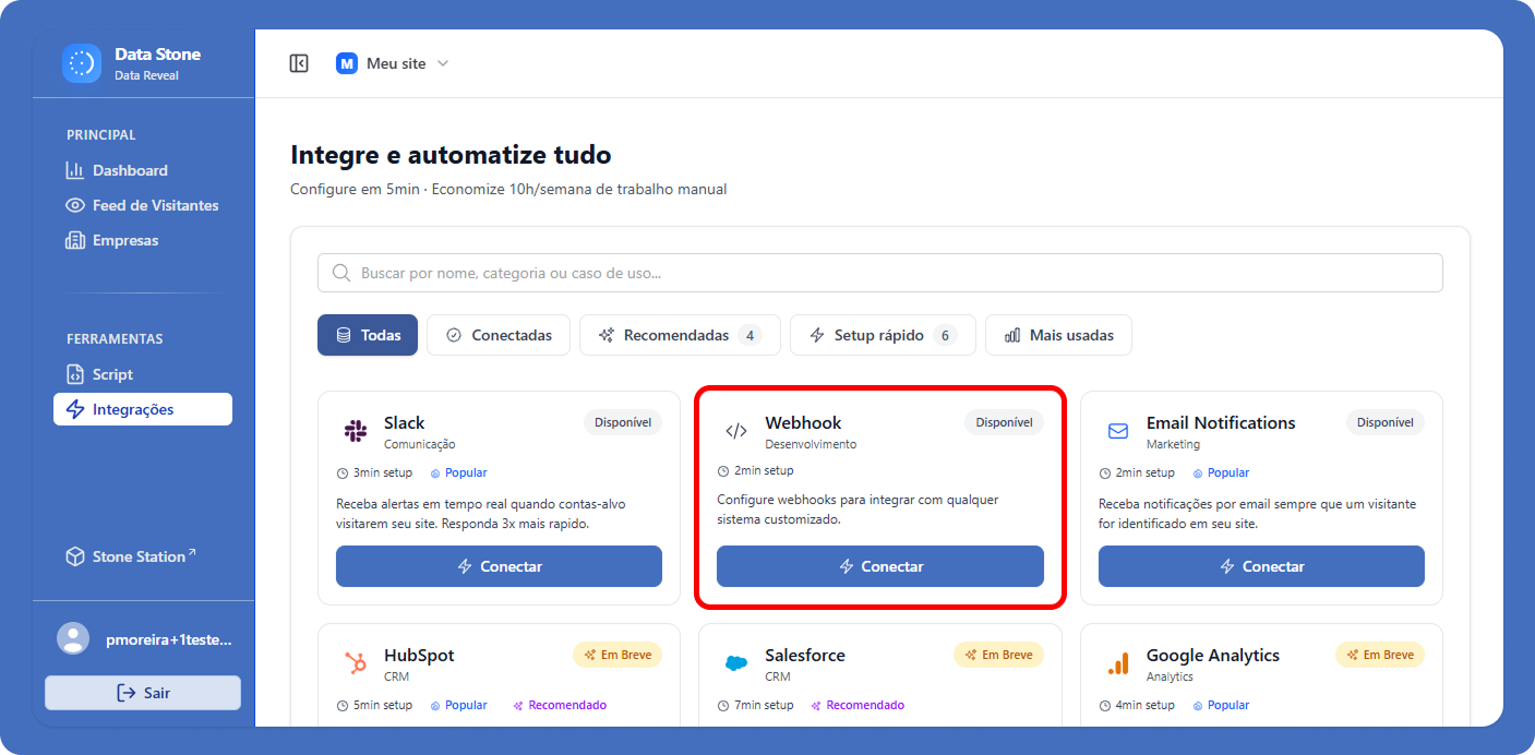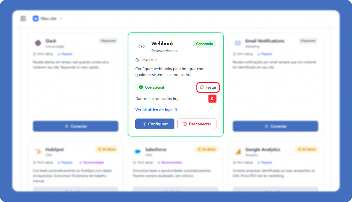 As notificações por Webhook são projetadas para enviar essas informações em tempo real diretamente para outros sistemas que sua equipe utiliza, como CRMs, plataformas de automação e sistemas internos. Isso cria um fluxo contínuo e automático de dados, acelerando as ações comerciais e melhorando a coordenação entre ferramentas.