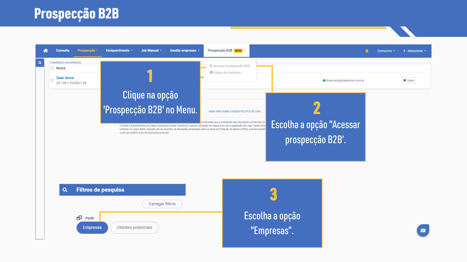 Para realizar sua prospecção B2B, siga o passo a passo abaixo: