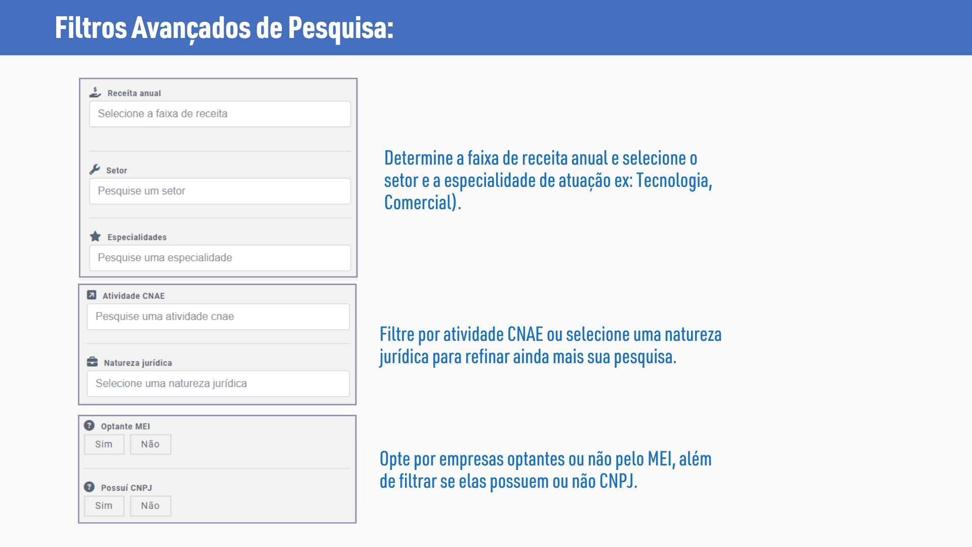 Para que serve? Conforme sua estratégia comercial, você irá segmentar listas, construindo uma inteligência de prospecção dentro do seu Perfil Ideal de Cliente(ICP) e de acordo com a sua estratégia Go-to-Market.