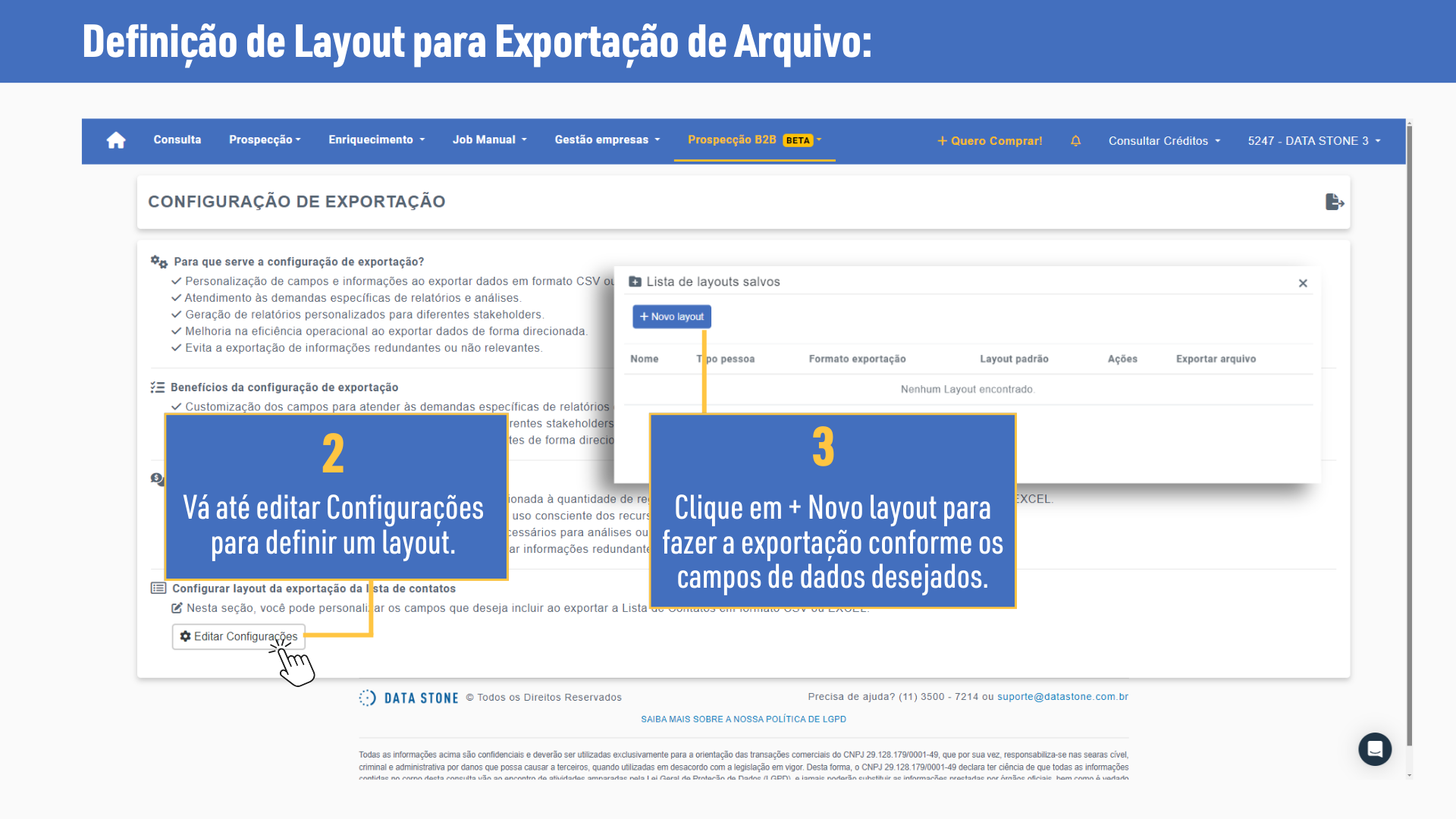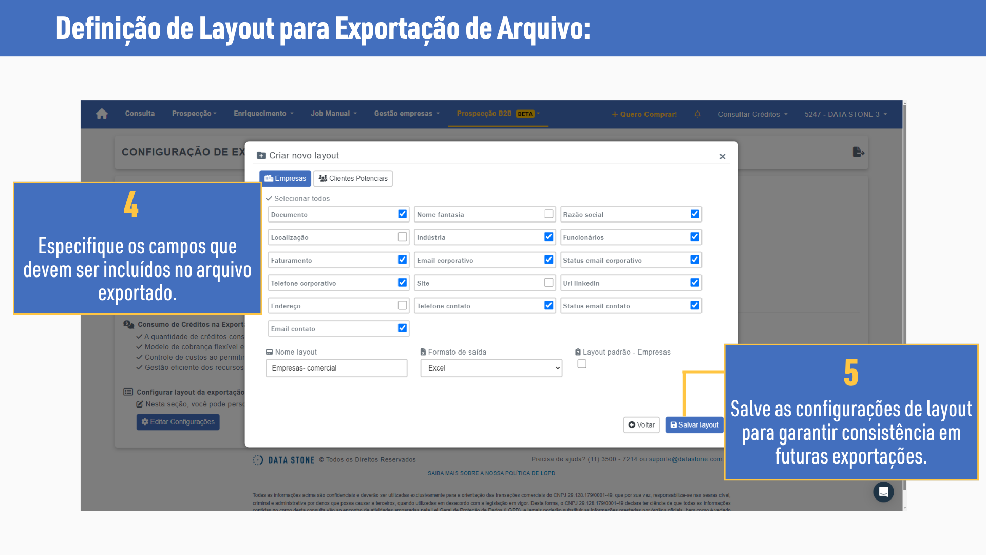 Confira abaixo como pré definir um layout para exportação de arquivos: